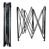 El sistema de apertura es de tipo paraguas o acordeón. El montaje puede ser realizado por dos personas en un minuto aproximadamente.