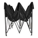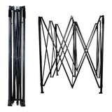 El techo está fabricado en lona OXFORD con un gramaje de 600. Cuenta con un tratamiento de impermeabilidad y protección anti rayos UV. Ideal para eventos de jardín o eventos publicitarios y de venta, no se decolora con el sol. El sistema de apertura es de tipo paraguas o acordeón. El montaje puede ser realizado por dos personas en un minuto aproximadamente. Fabricada en acero reforzado con tratamiento anticorrosivo.