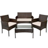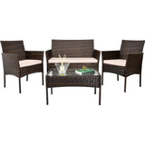 • ESTILO ELEGANTE Y DURADERO. Este juego de 4 piezas de muebles para patio está diseñado con un tejido tipo rattan que le brinda un aspecto sofisticado y resistente a la intemperie, perfecto para realzar la estética de su área al aire libre.