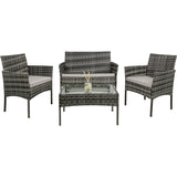 • ESTILO ELEGANTE Y DURADERO. Este juego de 4 piezas de muebles para patio está diseñado con un tejido tipo rattan que le brinda un aspecto sofisticado y resistente a la intemperie, perfecto para realzar la estética de su área al aire libre.