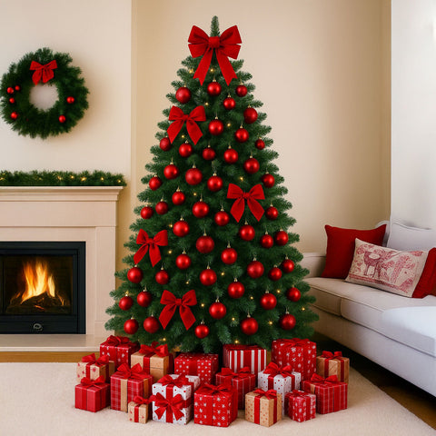 Con 2.4 metros de altura y 1200 puntas, este árbol brinda un gran volumen visual. Ideal para salas, oficinas o entradas principales, su diseño frondoso permite decorarlo con luces y ornamentos sin perder forma.